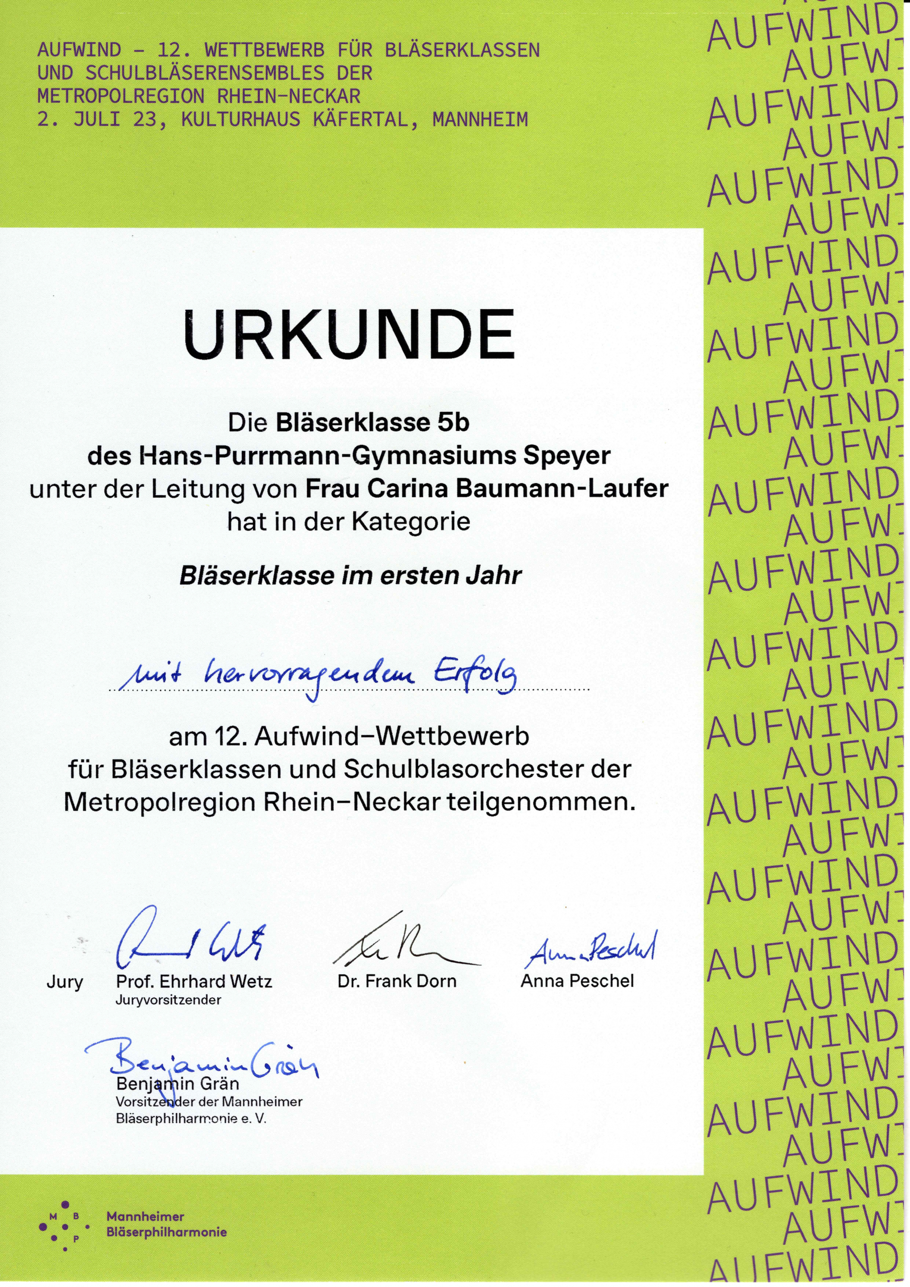 Aufwind-Wettbewerb 2023_Bläserklasse 5b_1. Preis