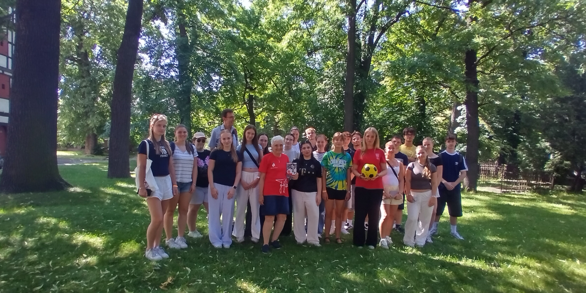 Bevor wir nach Schweidnitz gefahren sind, hat uns Frau Bossung-Winkler den Anfang einer Geschichte über den Kaiserslautern Spieler Fritz Walter erzählt. An der Kirche in Schweidnitz, nach der Busfahrt, hat sie die Geschichte fortgesetzt: