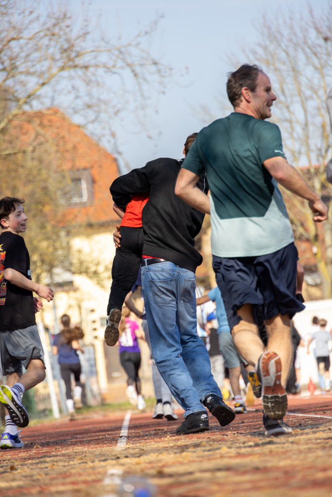 Schon im Vorfeld war das Interesse groß und am Veranstaltungstag selbst wurden wir nicht nur durch unsere Schülerinnen und Schüler, sondern auch durch Lehrkräfte, Eltern sowie zahlreiche regionale Unternehmen beeindruckt, die als Sponsoren tatkräftig unterstützten. Mehr als die Hälfte unserer gesamten Schülerschaft war aktiv auf der Laufbahn unterwegs – ein starkes Zeichen für Zusammenhalt, Einsatzbereitschaft und soziales Engagement.