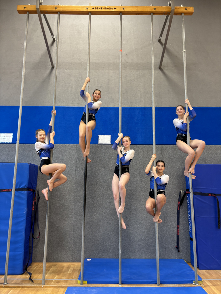 Es turnten: Valentina Amaral Berner, Alia Krause, Anna Streb, Elisa Neubauer und Linda Steiger (die sich kurzfristig für die im Bundesfinale Skilanglauf parallel antretende Lotte Benker einen Stammplatz erturnte).