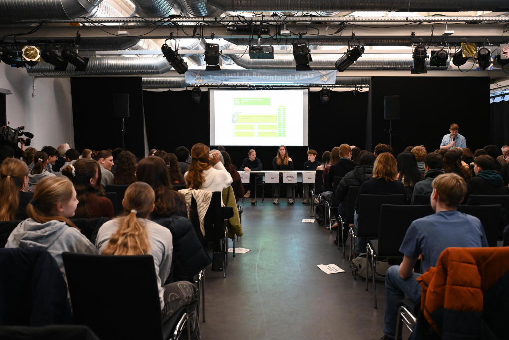 Am 18. November machte sich die Klasse 7g mit dem Ziel, 500 Euro für die Klassenkasse zu gewinnen, frühmorgens auf den Weg nach Mainz. Sie hatte sich mit vier weiteren Klassen aus ganz Rheinland-Pfalz für das Finale des Wettbewerbs „Mit Leselust auf Klassenfahrt“ (https://www.leselust-rlp.de/mit-leselust-auf-klassenfahrt/) qualifiziert und wurde nun vor eine spannende Herausforderung gestellt: Fünfzehn knifflige Fragen zu dem Jugend-Kriminalroman „Der Tote im Dorfteich“ von Franziska Gehm mussten richtig beantwortet werden, um das vollständige Preisgeld zu erhalten. Die Lektüre hatte die Klasse im Vorfeld aus einer vom Literaturbüro Mainz unter Leitung von Ingo Rüdiger herausgegebenen Liste ausgewählt, gelesen und im Deutschunterricht bearbeitet.