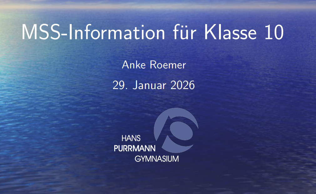 am Donnerstag, dem 29. Januar, findet bei uns in der Schule um 19:30 Uhr unsere Informationsveranstaltung zum Eintritt in die Oberstufe für Schülerinnen und Schüler anderer Schulen statt, die erwägen, an das Hans-Purrmann-Gymnasium zu wechseln. Selbstverständlich sind auch eure Eltern willkommen.